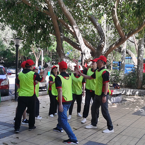 這個活動分三個小項目:拋瓶子、報數、喊口號,非常考驗團隊的團結合作能力。